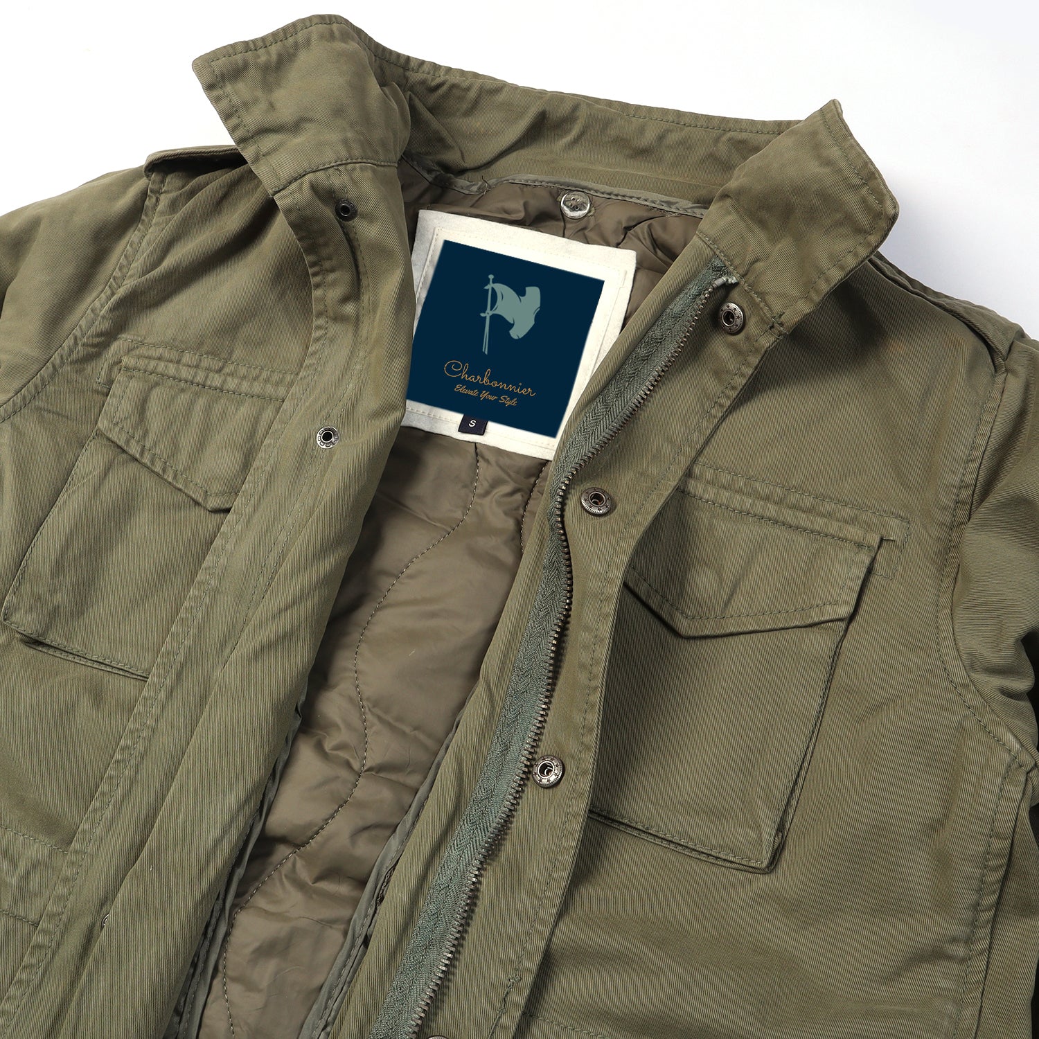 Men's Classic Field Jacket with Removable Quilted Liner & Hood - Vintage Style Outerwear 100% Cotton