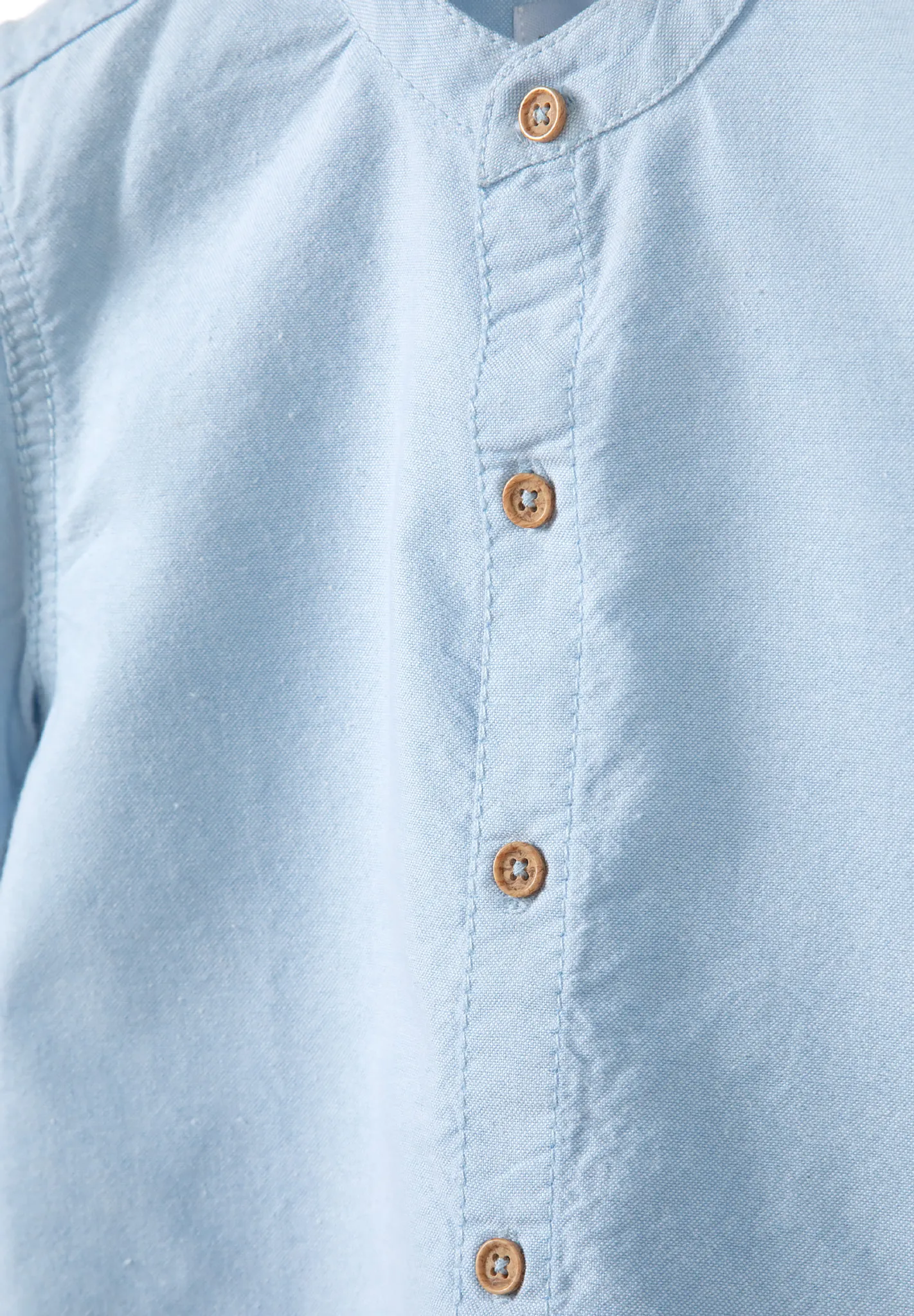 Kids Shirt and Shorts Set, Cotton Shirt with Mandarin Collar & Button Fastening, Adjustable Waist Shorts with Side Pockets