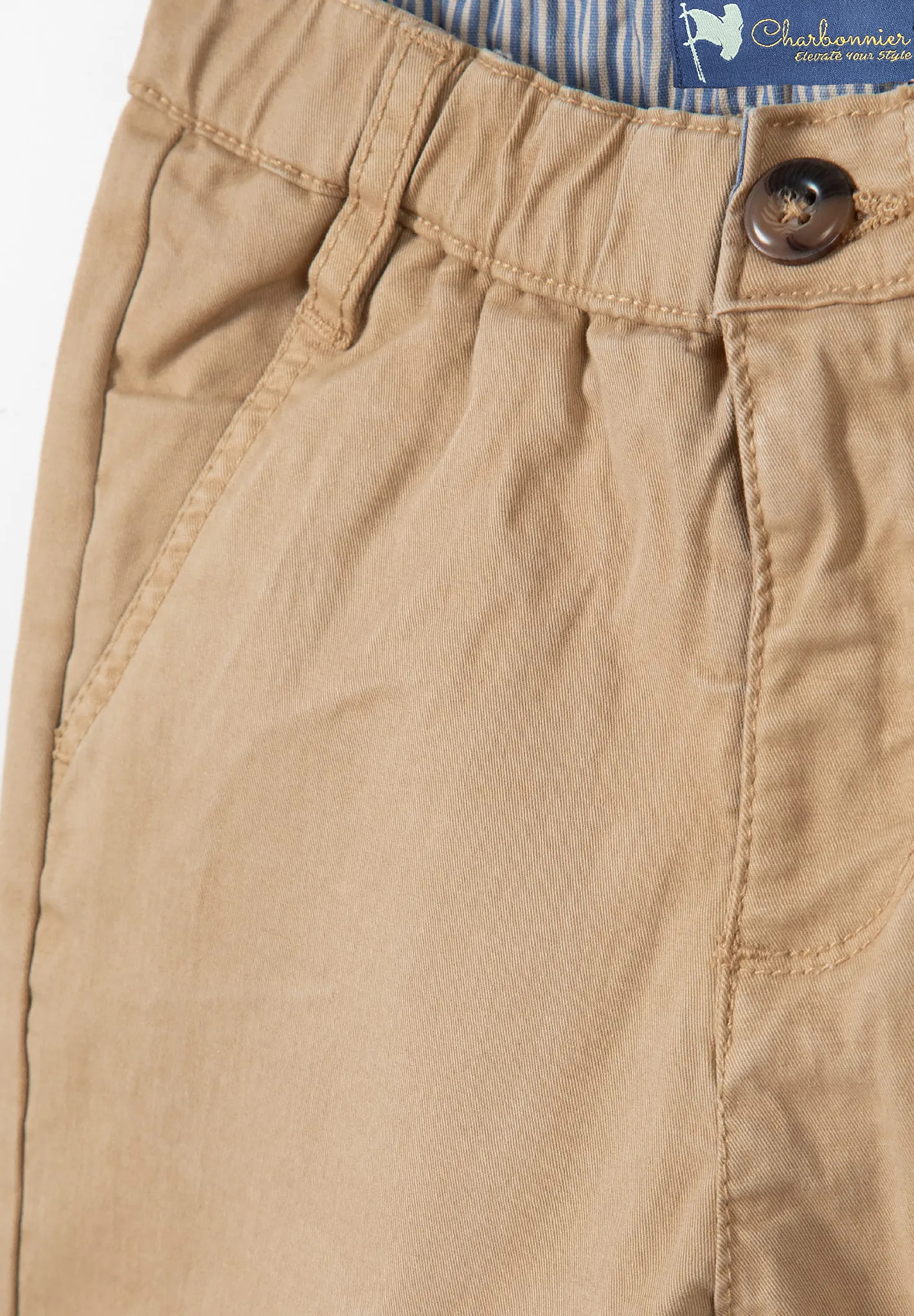 This Charbonnier kids’ shirt and shorts set is designed for comfort and everyday wear. The shirt is made from soft cotton fabric and features a mandarin collar with button fastening, while the shorts include an adjustable waistband for a flexible fit. Available in Blue and Camel colour variations, the set is crafted with practical details including side pockets on the shorts and a straight, regular fit design. The combination of breathable cotton and added elastane in the shorts ensures ease of movement, making this set suitable for both casual and semi-formal occasions.